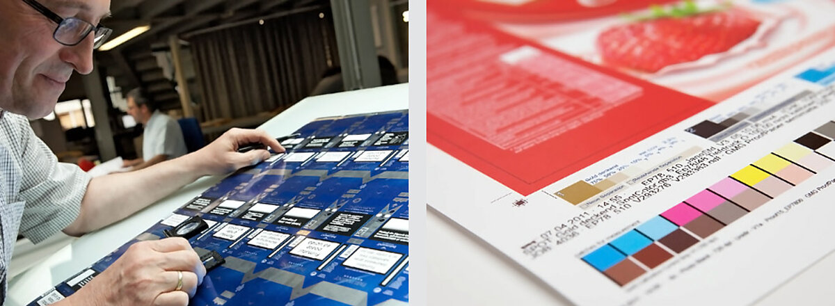 Proofs sind Vorab-Simulationen des späteren Druckbildes, die als Grundlage für inhaltliche, technische und farbliche Freigaben dienen. Für jede Phase im PrePress-Prozess gibt es spezielle Proof-Verfahren, mit deren Hilfe Fehler und kleinste Abweichungen frühzeitig entdeckt werden können. Das sichert Qualität und spart Zeit sowie Kosten, denn bei vorangeschrittenem Arbeitsprozess wiegen verschleppte Fehler doppelt schwer. Man unterscheidet zwei Klassen von Proofverfahren: Softproofs, die beispielsweise in Form von PDFs oder speziellen Softproof-Systemen rein virtuell am Bildschirm existieren und Hardproofs, die in Form physischer Ausdrucke vorliegen. In der Frühphase des PrePress-Prozesses wird der Target-Proof erstellt, dieser beinhaltet in der Regel noch keine druckspezifischen Anpassungen. Nach Verabschiedung durch den Auftraggeber ist er beim Abgleich mit Contract-Proof und Andruck das verbindliche Muster. Am Ende der Farbseparation in der Reproduktion steht der Contract-Proof, der bereits alle druckerspezifischen Informationen enthält. Er gewährleistet die zuverlässige Umsetzung, der im Target-Proof vereinbarten Ziele. Vor der Erstellung der Druckform wird meist noch ein sogenannter Form-Proof (auch Step- & Repeat-Proof ) erstellt, der das technische Layout auf Platte oder Zylinder darstellt. Die große Herausforderung beim Proofen im Verpackungsdruck ist die Farbverbindlichkeit, da für den flexiblen Verpackungsdruck keine Industriestandards existieren. Dies macht eine Standard-Repro unmöglich.
