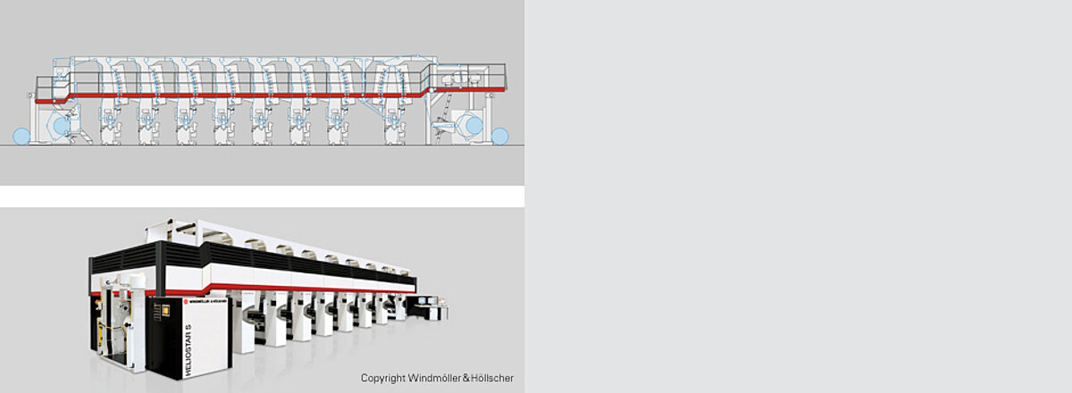 - Spezielle Einfärbewalzen gewährleisten selbst bei maximalen Druckgeschwindigkeiten (600m/min) eine optimale Befüllung der Näpfchen. Das minimiert auch das Eintrocknen der Farbe in feinen Näpfchen.