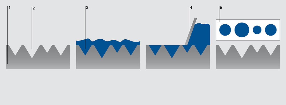 Gravure, also called rotogravure, developed from copperplate engraving. The direct printing process offers the highest printing quality and is used today in art reproduction as well as in the commercial printing sector. Rotogravure is used in particular for high and very high print runs, e.g. of catalogues and magazines. In contrast, sheet-fed gravure is reserved for more expensive and particularly high-quality print products. A gravure cylinder in whose surface the printing design is engraved acts as a printing form. A portion of the printing form dips into a tray with thin liquid printing ink. The ink is removed from the raised, non-printing surfaces with a doctor blade, similar to a steel ruler. Cell walls, which cover the cylinder like a grid shaped net, ensure the clean guidance of the doctor blade even over large surfaces to be printed. After the doctor blade wipe-off, the printing ink remains in the depths, the so-called cells, and is released through mechanical contact with the printing material.? Dark and lighter tones are created through more or less ink, i.e. through deep or less deep cells. Gravure is thus the only printing process where different thick ink layers and thus tonal values can be created inside a printing form. Gravure cylinders? are manufactured on a customised basis and are thus absolutely endless, which among other things explains their preferred use on flexible packaging materials. Printing fluctuations due to wear hardly exist in gravure.